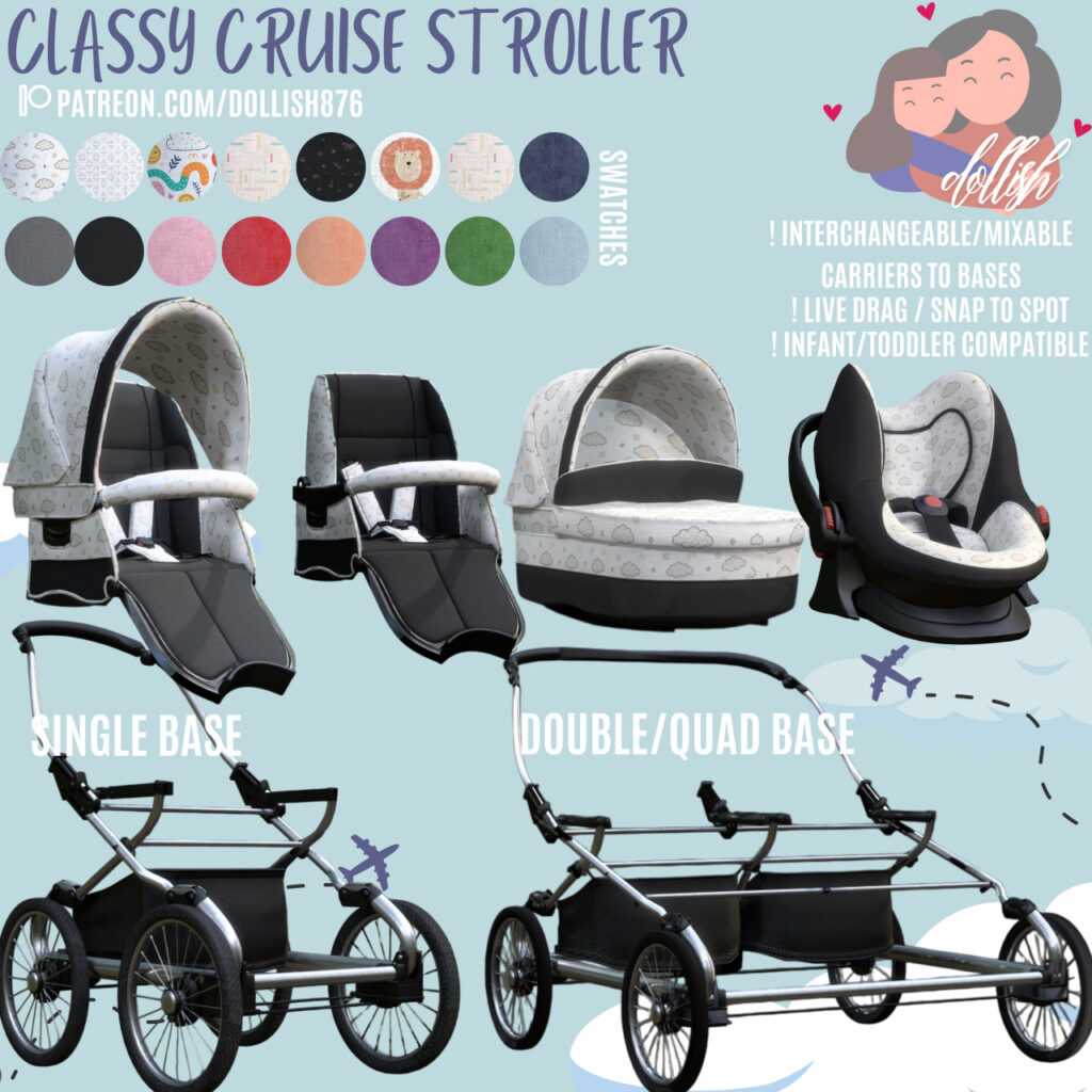 This stroller by dollishsims is a stunning addition that will easily become your absolute favorite. Its functional design perfectly complements the stylish flair it adds to your game. Download Classy Cruise Stroller here