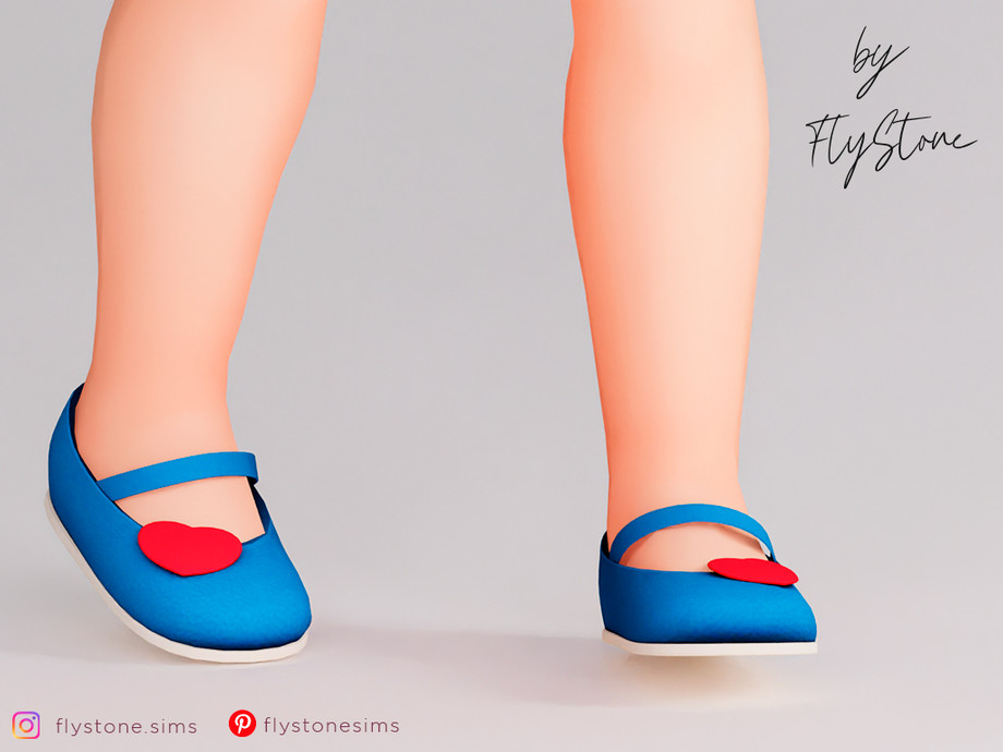 The Leather Flats with a Heart by FlyStone offer a charming and delightful aesthetic for your toddler Sims. These flats, available in multiple swatches, scream elegance and are essential for your toddler's adventures.