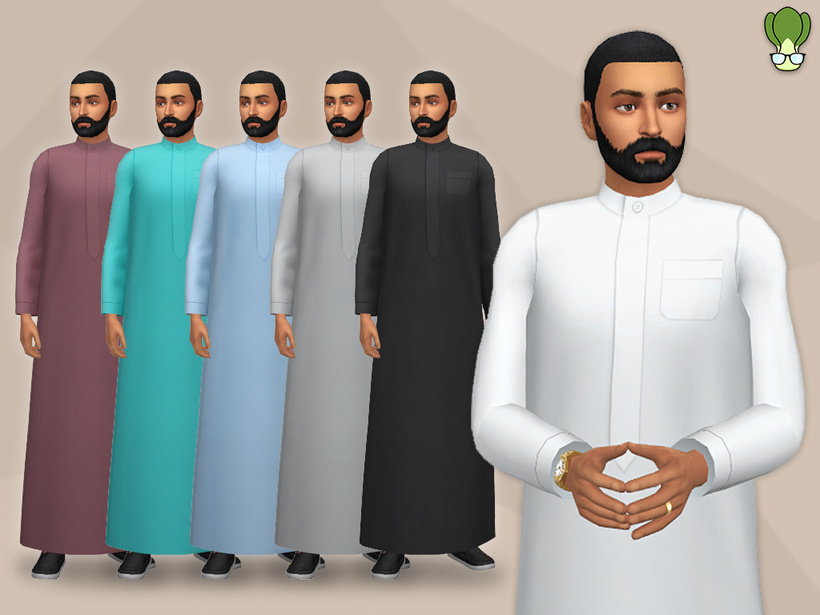 A historically accurate representation of the traditional long robe worn by men across the Arabian Peninsula. BokchoiJo captures the clean, dignified silhouette of the thobe beautifully — an essential piece for any simmer building an authentic Middle Eastern household.