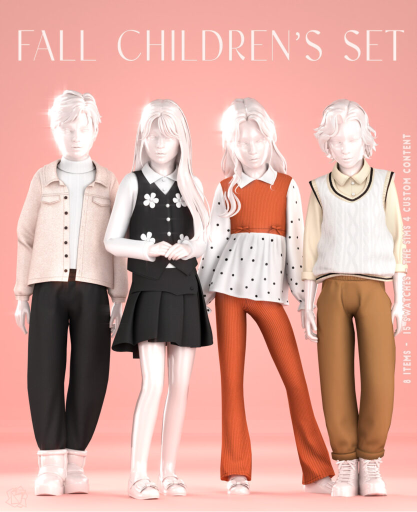Embrace the autumn's warmth with this cozy and colorful set. Perfect for bringing seasonal vibes into your Sims' wardrobes.