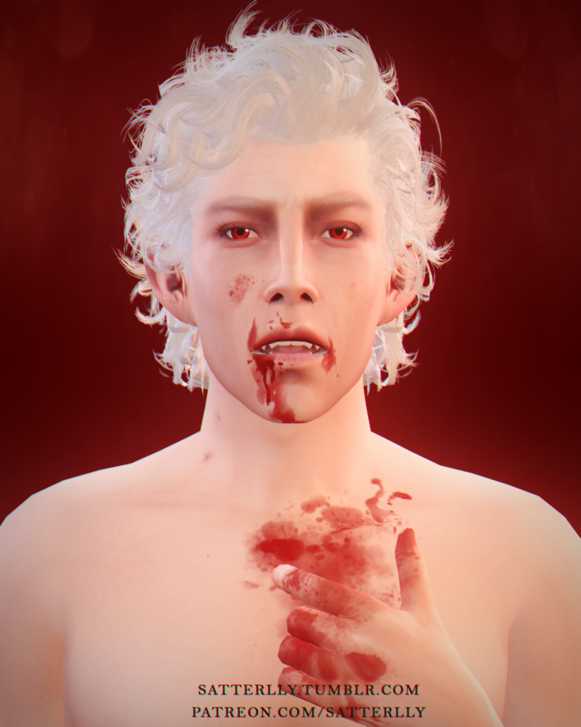Incredibly realistic blood spatters for your Sims' chest, hands, and around the mouth — making them look like authentic zombie survivors or undead creatures fresh from a kill. The Pisha's Blood CC set from Satterlly is one of the most downloaded zombie aesthetic accessories on TSR.