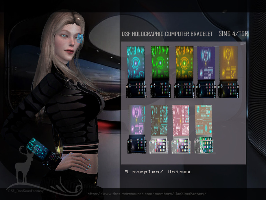 A spectacular holographic wrist-computer bracelet that is exactly the kind of accessory people imagine wearing in a sci-fi future. This extraordinarily detailed piece adds incredible authenticity to any futuristic Sim build and is the perfect tech accessory for space explorers, scientists, and cyber warriors.