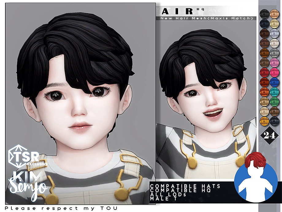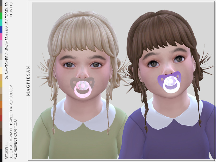 The Terri Hair presents an exquisite flair, transforming your sims toddler cc collection. Its versatility with multiple swatches makes it a go-to choice for fashion-forward players.
