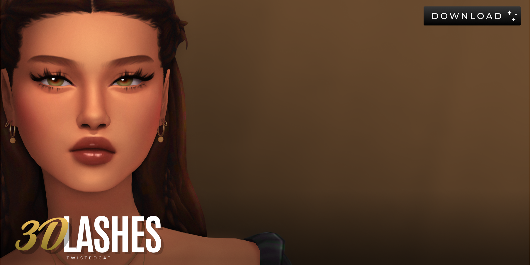TwistedCat's fourth lash set is absolutely lush! Available in two versions - one that conflicts with glasses and another with rings - you can choose based on your Sim's accessory preferences. Four distinct shapes with three color options each give you twelve total swatches. Base game compatible and suitable for teens through elders with feminine styling.