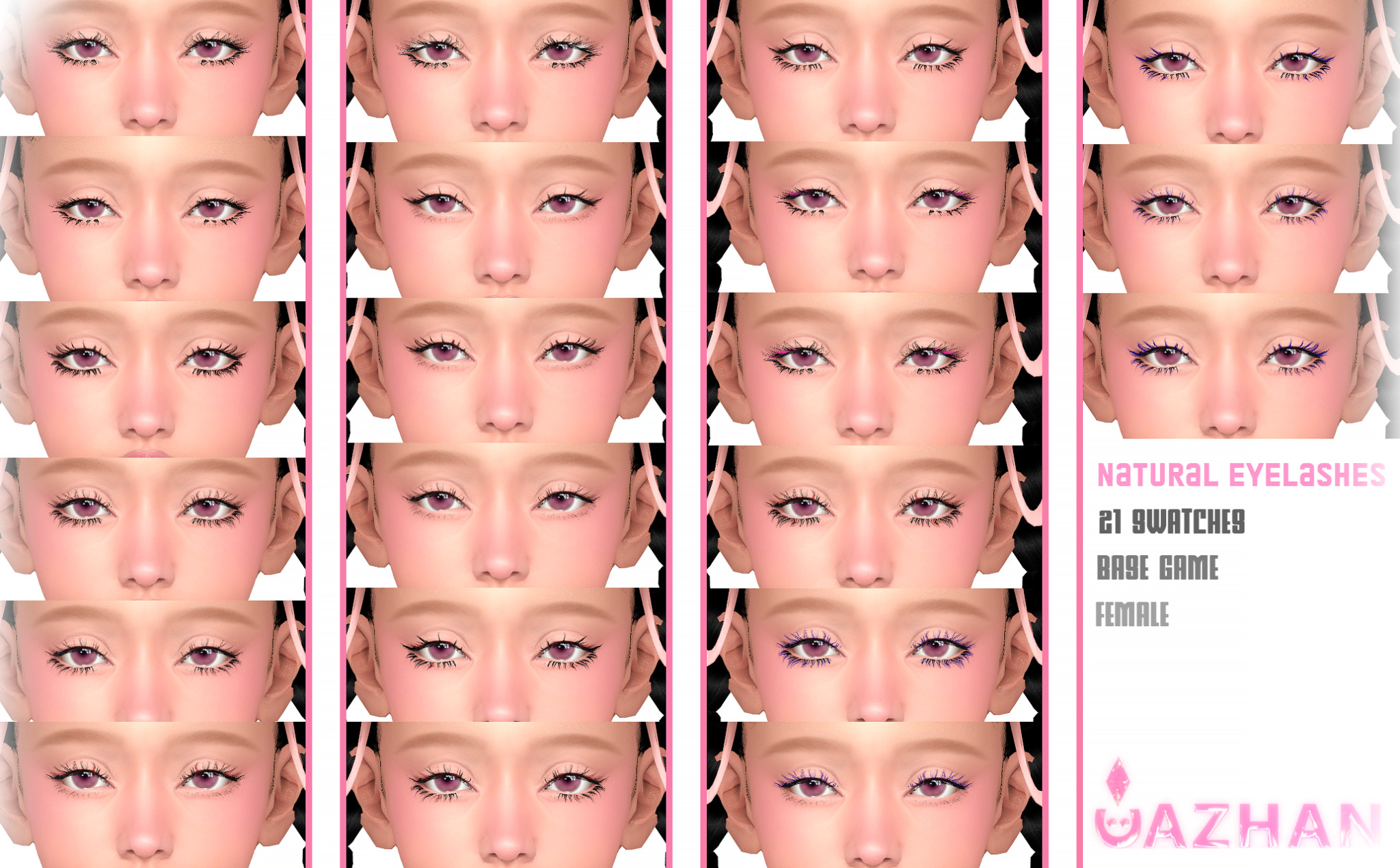 With an impressive 21 swatches, Cazhan offers tremendous variety! Found in the eyelashes category with HQ mod compatibility, these feature custom mesh and textures created from scratch. The creator asks users not to edit, reupload, or convert - respecting their work means we can continue enjoying quality free CC like this.