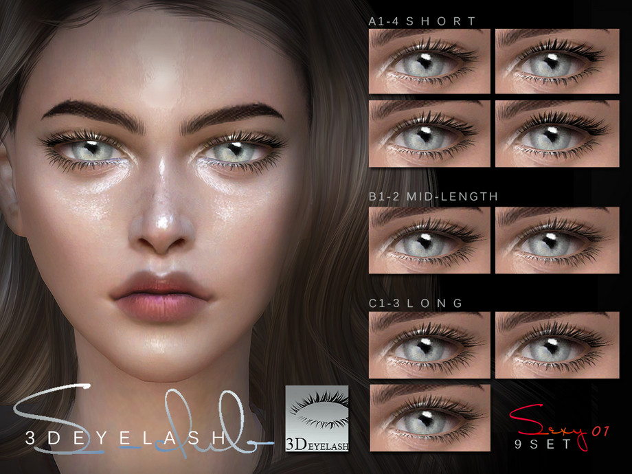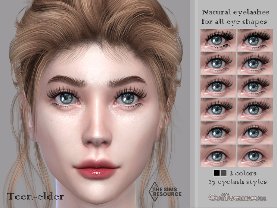 True to its name, these work with absolutely every eye shape in the game! The creator designed 27 different lash styles ranging from long to short, dense to sparse, with both upper and lower lash options. Available in classic black and dark gray, they're HQ mod compatible and perfect for teens, young adults, adults, and elders.