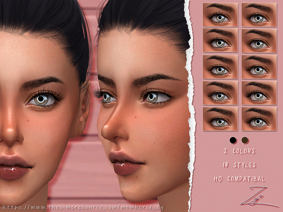 With nearly 800,000 downloads, these are some of the most popular lashes in the community! _zy's 3D eyelashes offer versatile styling with multiple swatches and excellent definition. They work wonderfully for all eye shapes and provide that perfect flutter whether your Sim is going casual or formal.